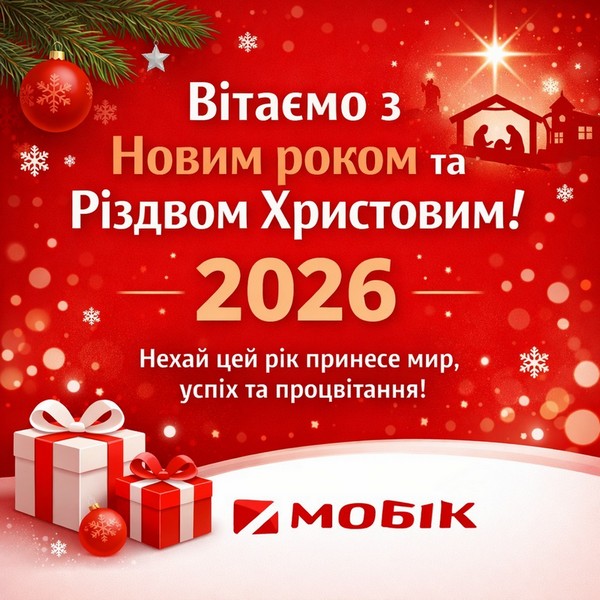 Шановні клієнти, партнери та друзі! Команда Mobik щиро вітає вас з Новим роком та світлим святом Різдва Христового! Нехай 2026 рік принесе мир, стабільність та впевненість у завтрашньому дні, нові можливості для розвитку, успішні проєкти та надійних партнерів.